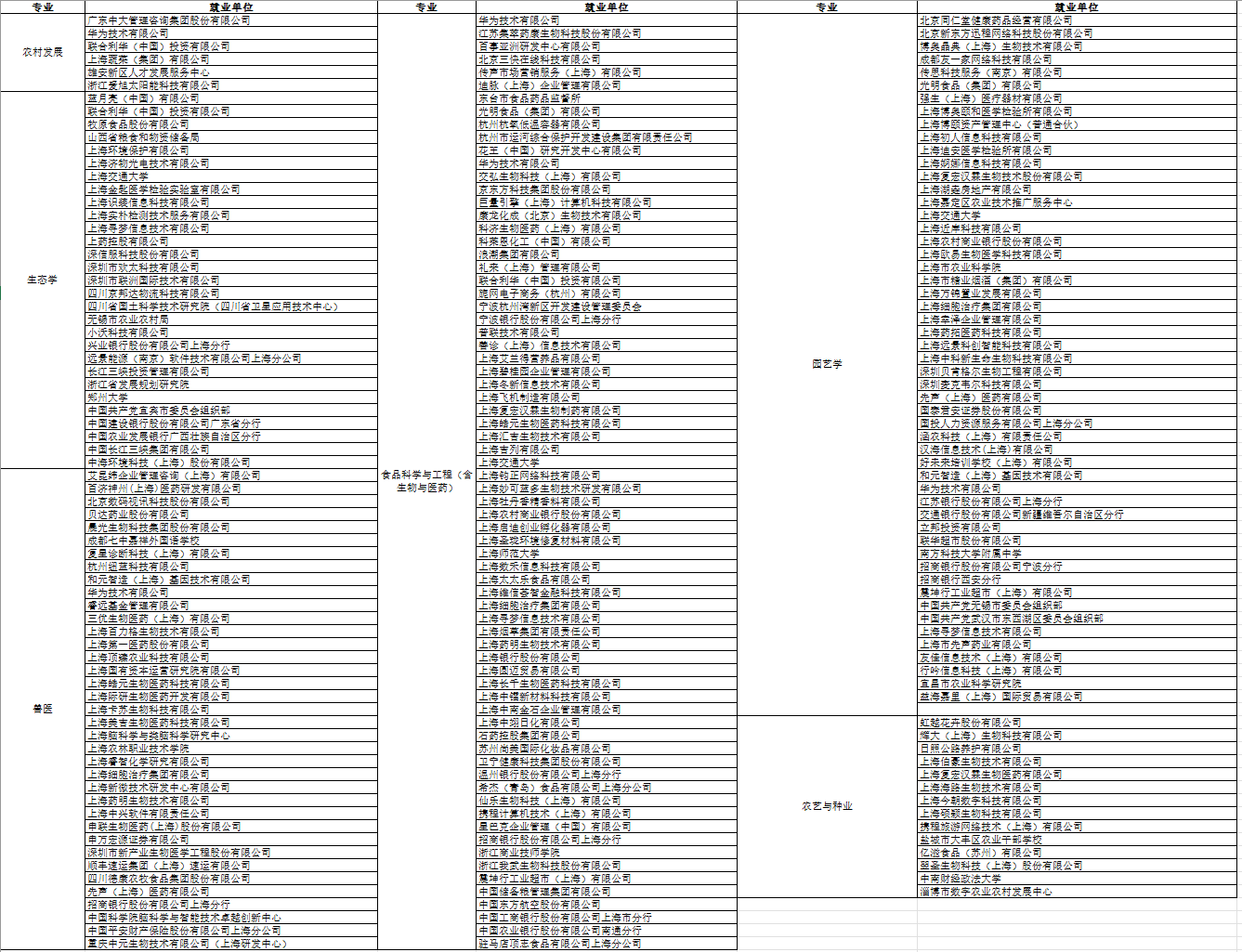 硕士就业去向列表
