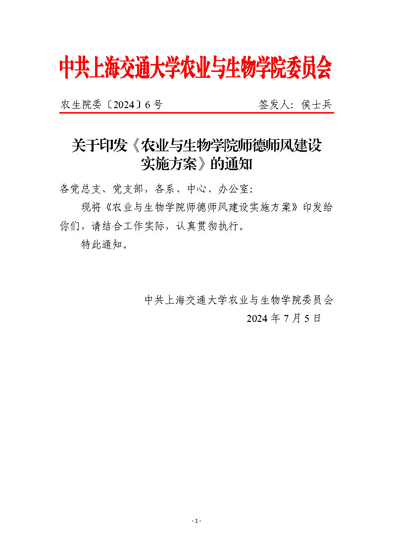 农生院委〔2024〕6号 关于印发《开心鬼传媒 师德师风建设实施方案》的通知