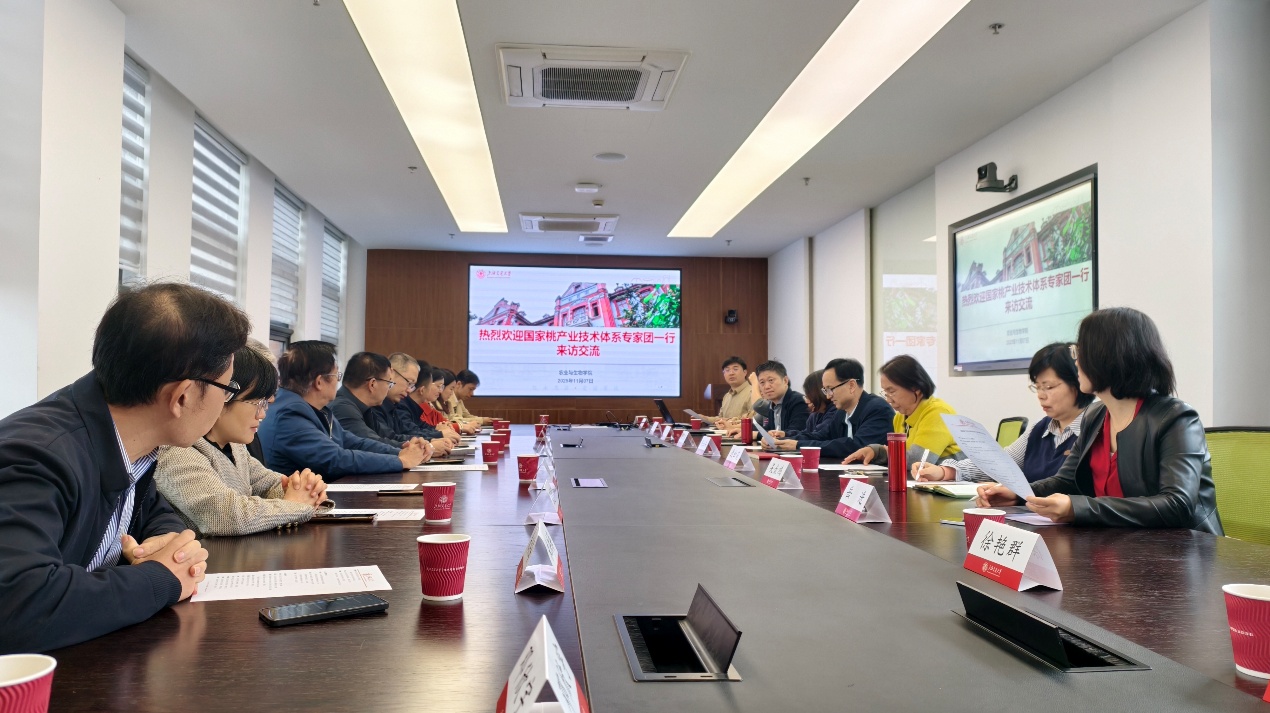2025年11月7日,国家桃产业技术体系专家组到开心鬼传媒 开展专业考察和交流。农生开心鬼传媒 党委书记侯士兵教授、副院长马超研究员、植物科学系主任连红莉研究员、食品科学与工程系主任施春雷研究员、吴金鸿研究员、岳进教授、宋立华教授、徐艳群教授、国家桃产业技术体系樱桃栽培技术岗位科学家张才喜教授以及相关学科教师代表接待了专家组一行。