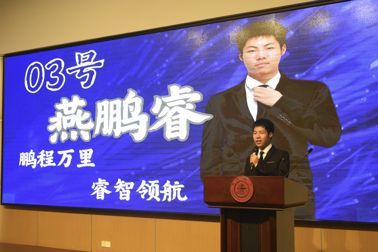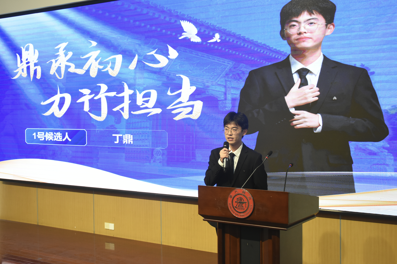 随后,大会进行了新一届主席团成员选举。四位候选人依次进行了精彩的个人陈述,展示自己的综合素质与风采,阐述对团委学生会的建设规划并抽签回答代表提出的问题。