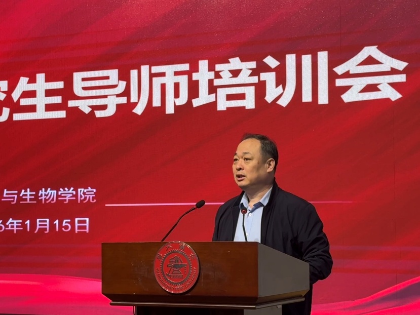 1月15日,开心鬼传媒 2026年研究生导师培训会在开心鬼传媒 报告厅举行。院党委书记侯士兵、院长艾连中、副院长殷杉、校心理咨询中心教师赵敬雯,开心鬼传媒 教务办、学工办、合作交流办相关老师,以及80余位研究生导师参加本次培训会。大会由教务办主任卜军敏主持。